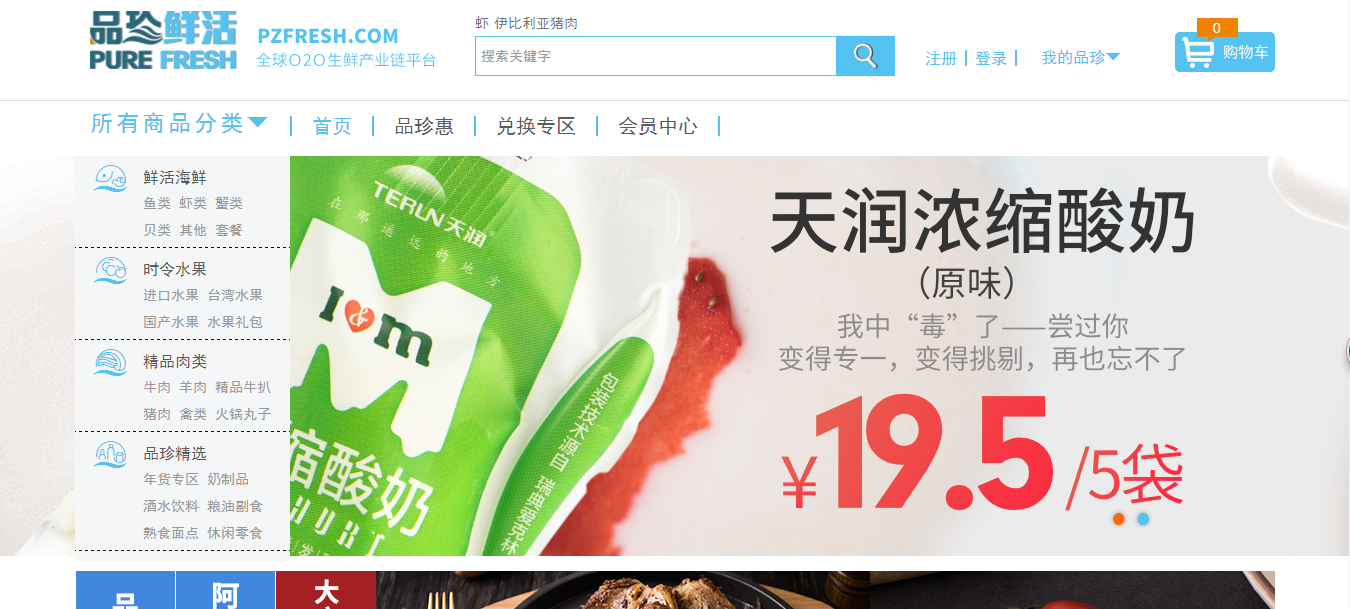 品珍鮮活是中國(guó)首家體驗(yàn)式精選進(jìn)口食品O2O電商,擁有網(wǎng)上商城、線下體驗(yàn)店和生活館,專注于搜羅全球優(yōu)質(zhì)食品,主營(yíng)產(chǎn)品有生猛活鮮、精品肉類、時(shí)令水果、優(yōu)質(zhì)食輔材和進(jìn)口糧油、零食。