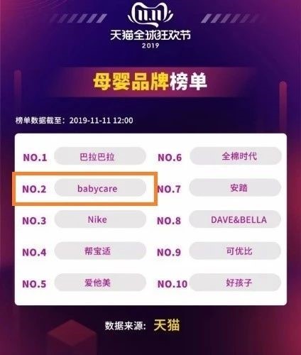 2019雙十一母嬰品牌榜單babycare排名前三