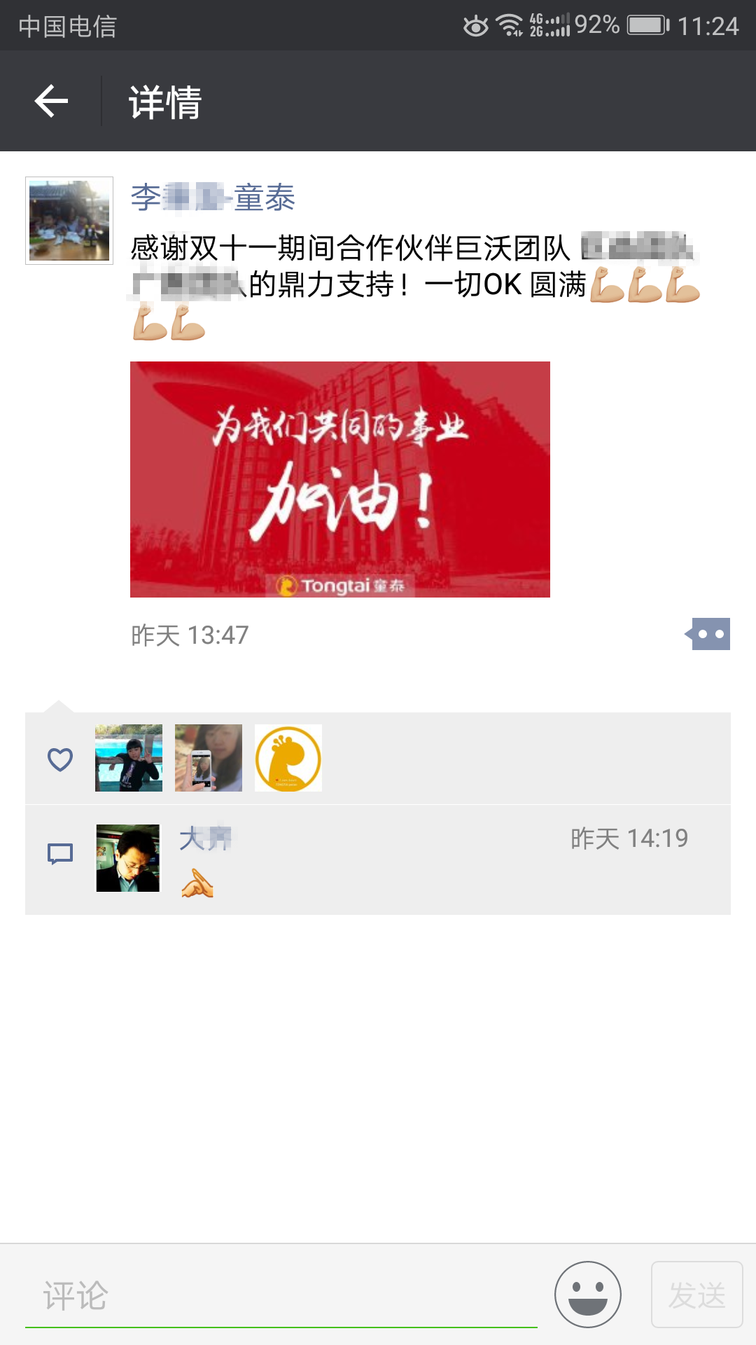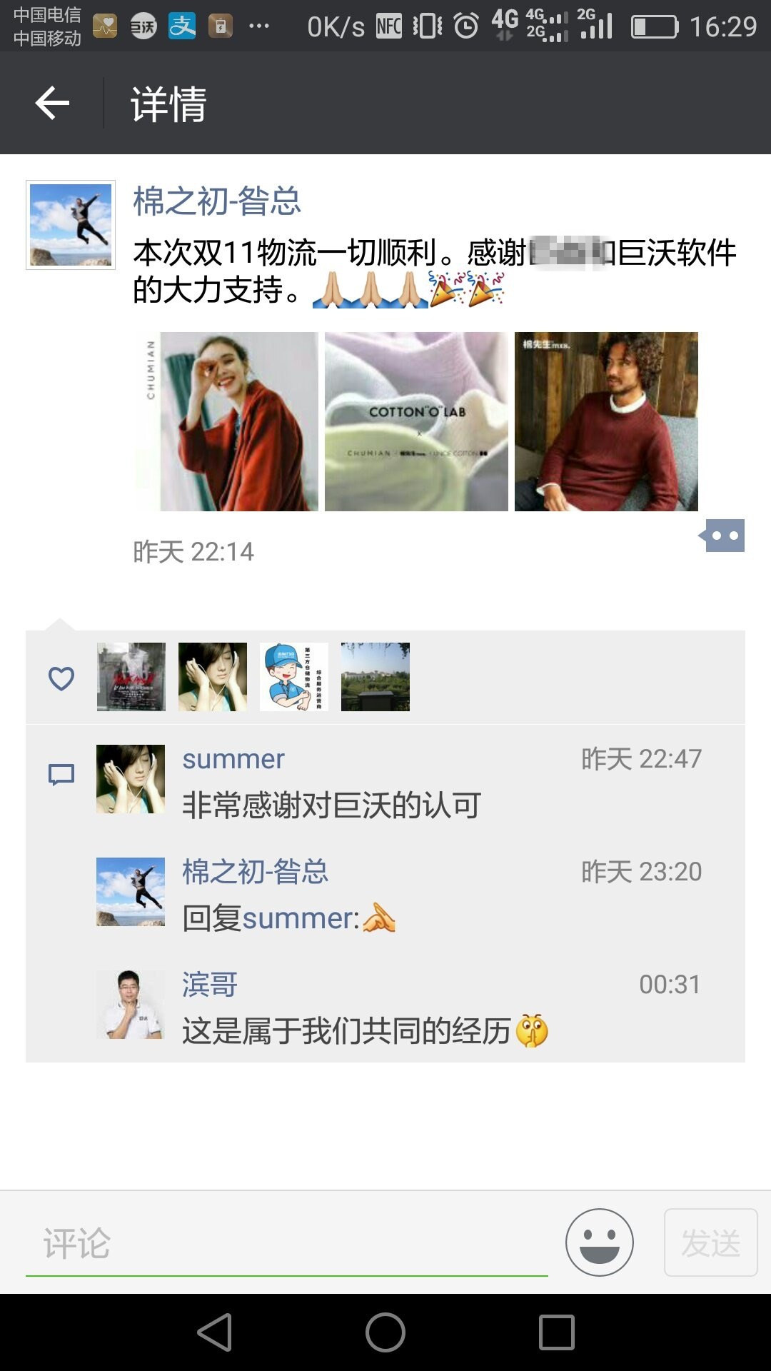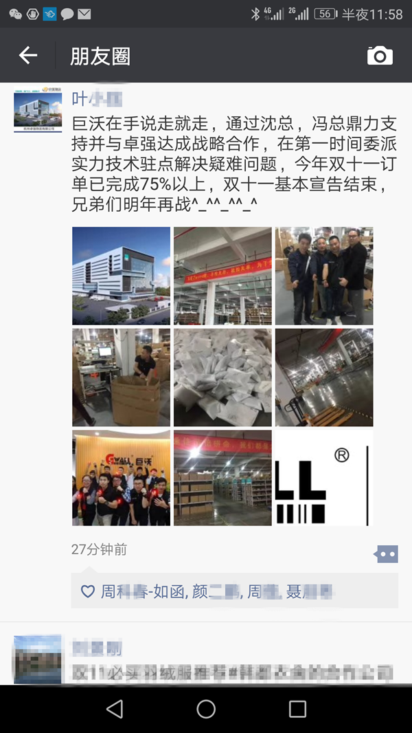 今年雙十一,巨沃共派出105名G記成員,支援全國共73家客戶順利度過雙十一。截至今天,G記已經(jīng)基本歸隊,帶著榮譽與成就感,帶著客戶的贊美與肯定。在此,對所有支持與肯定巨沃團隊與巨沃產(chǎn)品的客戶表示感謝,也對所有日以繼夜奮戰(zhàn)在雙十一前線支援客戶的G記表示感謝。